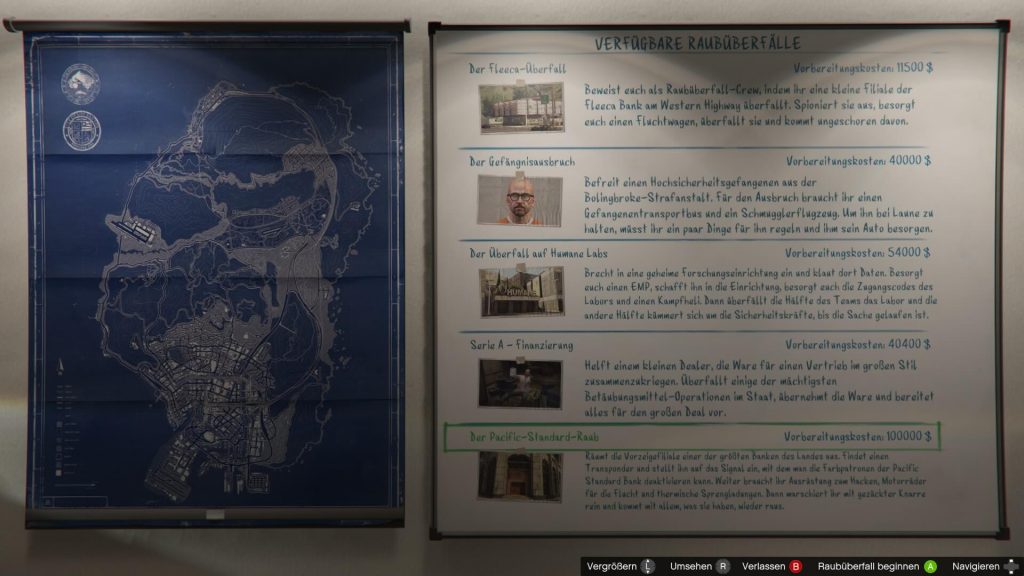 Please note that starting Heists requires a certain fee from you, which varies by raid. We recommend the Fleeca job for beginners because the fee is only $ 15,000 GTA. You will be rewarded for this with around 143,000 GTA dollars.